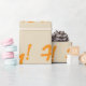 Happy Birthday! Casual orange script in a half-bricked tiled design on a white background, or customise your own background.