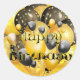 Happy Birthday Sticker with black gold balloons and text.