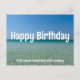 This beautiful beach Happy Birthday postcard is custom made with your coastal company name over the pretty ocean waves. Gorgeous seaside business birthday postcards for marketing to past clients and current corporate colleagues. Modern white script across the coast horizon. Personalised blue script on the back.