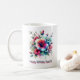 It’s a coffee mug with beautiful flowers, specially designed to wish Beatrix a happy birthday. It's not just about sipping coffee; it's about the good vibes it sends throughout the day.