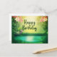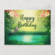 Happy Birthday Beautiful Nature Lake & Flowers Postcard