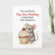 An adorable birthday card for a best friend featuring an illustration of a cute little mouse carrying a vanilla cupcake with sprinkles and a cherry on top! All text on this card can be edited in the personalize area.