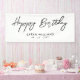 Create your own custom birthday banner featuring modern script calligraphy happy birthday and minimal typography name and date design for personalised birthday decor.