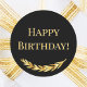 A classic black colored background. Text: Happy Birthday! Decorated with faux gold leaves.