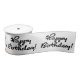 Black script happy birthday ribbon. Make a birthday gift even more special with Happy Birthday! ribbon written in a black script. Happy on the first line, Birthday on the second line, repeated across the ribbon. As shown, on a white background, but you can choose your favourite background colour.