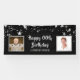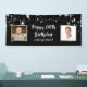 Celebrate any age birthday with this black and silver star banner sign featuring HAPPY # BIRTHDAY in a modern, hand lettered brush script font and personalised with two photos and their name or other custom text. Consider using Then and Now photos. PHOTO TIP: For fastest/best results, choose a photo with the subject in the middle and/or pre-crop it to a square shape BEFORE uploading and use the CHANGE tab in the PERSONALIZE section. CHANGES: Change the background colour, choose a styled graphics background or change the personalised text font style, colour, size and placement by clicking on CUSTOMIZE FURTHER under the PERSONALIZE section. Contact the designer via Zazzle Chat or makeitaboutyoustore@gmail.com if you'd like this design modified, on another product or would like coordinating items.