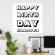 Happy Birthday black and white custom name text modern fun bold party Poster.
