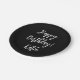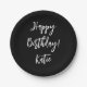 Happy Birthday black white personalised script. Paper Plate