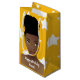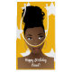 This design features beautiful African American woman with a top knot bun, on gold background with white stars.