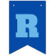 Sturdy bunting banner for a boys birthday party. Dark and light blue colours with one template for adding the child's photo between the words. Spells out "Happy Birthday" in alternating blues. The first and last flag are balloons. The banner can be hung outside or inside and is 6 feet long. Read more in the product description.