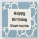 Cool blue pattern and the text; Happy Birthday. To customise, click personalise and change the name to your liking.