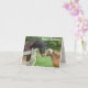 Happy Birthday card with a brown miniature "mini" horse and a beautiful sweet Shire cross draught horse on the cover. Inside features a sepia picture of a horse in a field, and the customisable inscription "wishing you a day filled with all your favourite things" and "Have a Great Day!".