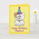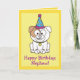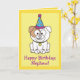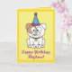 A cartoon bulldog for a nephew is dressed for a birthday party in this colorful, happy birthday card. For matching items type "penguincornerstore bulldog" into the Zazzle search bar.