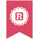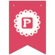 "HAPPY BIRTHDAY" bunting flags in hot pink with a white circular label in the centre with the lettering. By Monkey Business Graphic Design, 2020. The perfect accent to all your birthday parties.