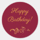 Happy Birthday burgundy gold Classic Round Sticker