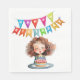 A Colourful Happy Birthday Party Paper Napkins Designed With Birthday Girl Blowing Out Her Candles with Happy Birthday Banner