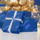 Happy Birthday Cake Neon Blue Sign Text and Cake Wrapping Paper