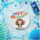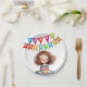 A Colourful Happy Birthday Party Paper Plate. Designed With Birthday Girl Blowing Out Her Candles with Happy Birthday Banner