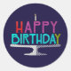Happy Birthday Cake Typography Sticker (Round)