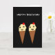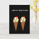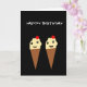 Happy birthday card with cute ice cream cone art on cover. This card might go good with a gift card to their favourite ice cream place.