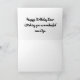 This card is great fun and good quality. I loved the humour inside and on the back. There is the opportunity to change the orientation of this card from landscape to portrait, which I did. It is relatively straightforward to amend the typeface to fit the new orientation. It was well packaged with no plastic. The printing on this card is excellent.