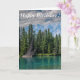 This is a mildly humourous and good-natured birthday card. The card is vertical with a photo of a lake, trees and mountain taken in Banff in Alberta, Canada. Most likely it would be sent by a friend.