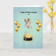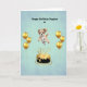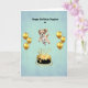 Beautiful 5x7 Greeting card with green background; featuring, Gold Ballons, a little dog, and Gold cake.
