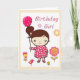 Happy Birthday Card with "Birthday Girl" written in pink, a little girl, five flowers and a bird.