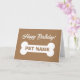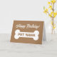Happy Birthday card for pet dog with cute big bone. Brown or custom colour background. Personalise with pet name and message on the inside. Fun greeting card for animal lover.
