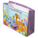Happy Birthday Cartoon Animals and Balloons Purple Large Gift Bag