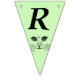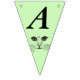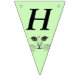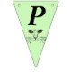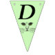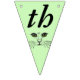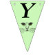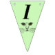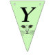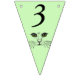 This flag shaped bunting Happy Birthday banner is a light green colour with the face of a cat drawn in black ink with bright green eyes on each flag. Customise the birthday year with the templates.