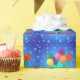 Happy Birthday, Festive design with coloured balloons on blue starry sky.