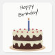 A Happy Birthday square sticker with a chocolate and vanilla cake.