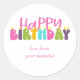Happy Birthday Colourful Candle Typography Classic Round Sticker