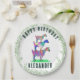Colourful, cute watercolor goats in vibrant pink, purple, blue, orange, yellow and aqua with foliage greenery. A cute farm animals kids any age birthday party paper plates with goats standing on goats. This fun party decor is easy to personalised to create a unique party supplies suitable for children and adult goat lovers. Colourful psychedelic goat original illustrations by artist Catherine Sweetman