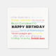 A fun birthday design that says happy birthday in many languages like French, Japanese and Spanish in a rainbow of colours