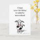 This card is great fun and good quality. I loved the humour inside and on the back. There is the opportunity to change the orientation of this card from landscape to portrait, which I did. It is relatively straightforward to amend the typeface to fit the new orientation. It was well packaged with no plastic. The printing on this card is excellent.