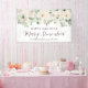 Beautiful roses create a stunning 100th birthday party welcome banner. A gorgeous arrangement of ivory white roses along with assorted vines and leaves make it a very modern floral design.