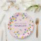 Happy Birthday Custom Name Confetti Blush Pink Paper Plate
