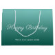 Custom Teal Blue Green Colour Calligraphy Script Happy Birthday Modern Template Trendy Elegant Large Gift Bag.