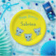 Happy birthday cute bouncy blue kittens yellow paper plate