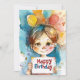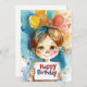 Happy Birthday Cute Girl with Balloons Holiday Card