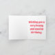 This card is great fun and good quality. I loved the humour inside and on the back. There is the opportunity to change the orientation of this card from landscape to portrait, which I did. It is relatively straightforward to amend the typeface to fit the new orientation. It was well packaged with no plastic. The printing on this card is excellent.