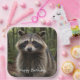 These birthday plates feature a cute racoon. Text can be changed or eliminated according to your need.