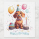 Cute illustration of Dachshund dogs dressed up for a birthday celebration. Perfect for pet lovers or dog parents!