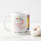 Custom printed coffee mugs personalised with your children's unique artwork. This template has space to add 3 different works of art and/or photos. Upload a photo or scan of your kids' art into the template. Use the design tools to customise the Happy Birthday message or add additional text or images. Send a mug to grandparents, or make a special gift for birthday, Valentine's Day, Mother's Day, Father's Day, etc. A perfect special childhood keepsake to keep or share!