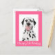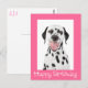Aww...who can resist the cute face of a Dalmatian puppy dog? This charming Happy Birthday greeting postcard features a portrait of a happy Dalmatian puppy dog with a crisp white background. A vibrant pink border highlights a Happy Birthday greeting.