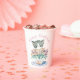 A cute kitten sitting in a pot of flowers is featured on these paper cups. Your daughter and her friends will love these cute cat drinking cups. To edit the text click on the personalise button. This design contains A.I.