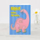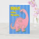 Big Pink dinosaur eating a leaf, with a birthday greeting to Daughter on a blue background.