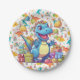 A Cute Happy Birthday Dinosaur Paper Round Plate Designed With Balloons, Colourful Dinosaurs